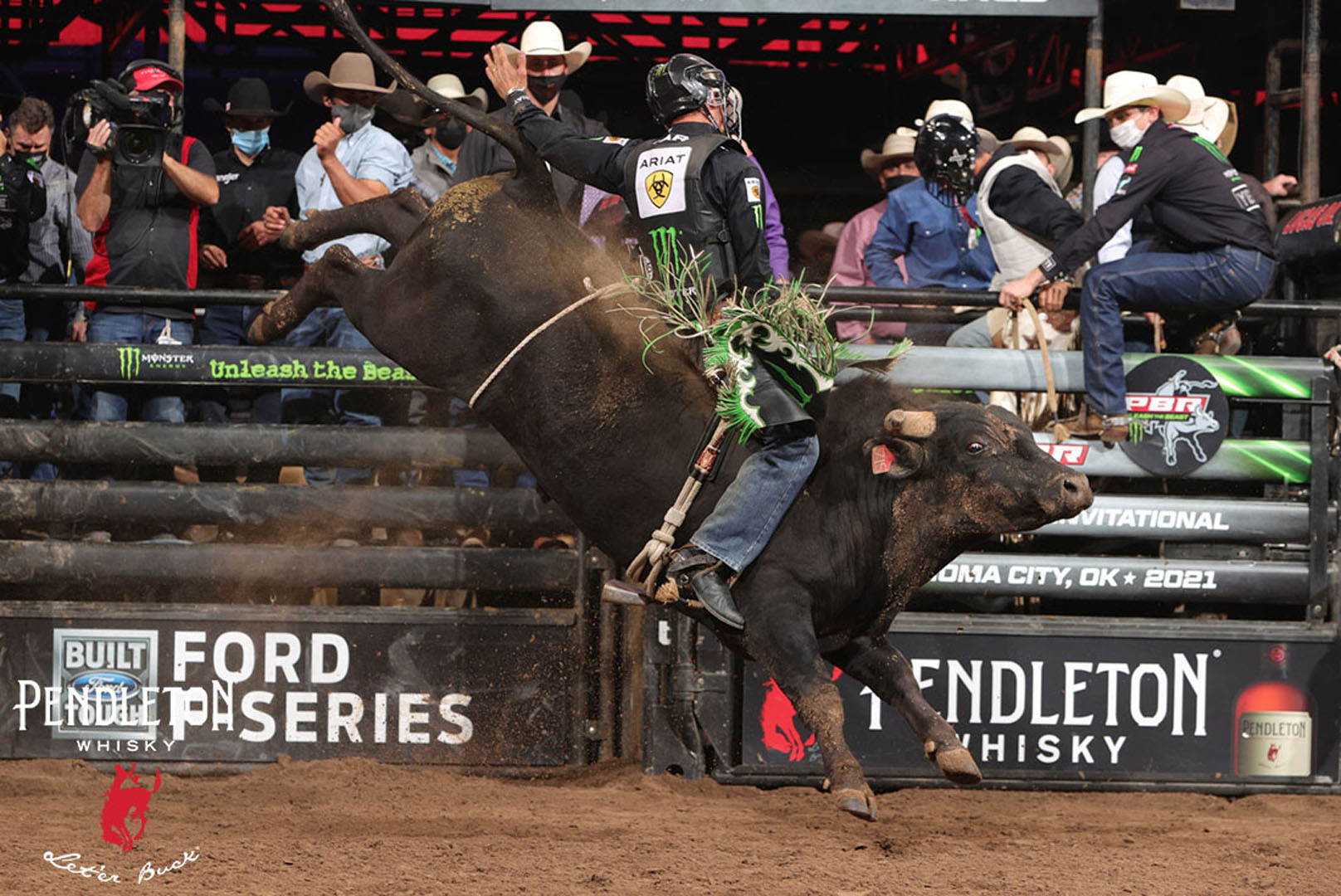 On the first night of competition in Oklahoma City, Joao Ricardo Vieira won Round 1 with an 87.75-point ride on Good Whiskey.