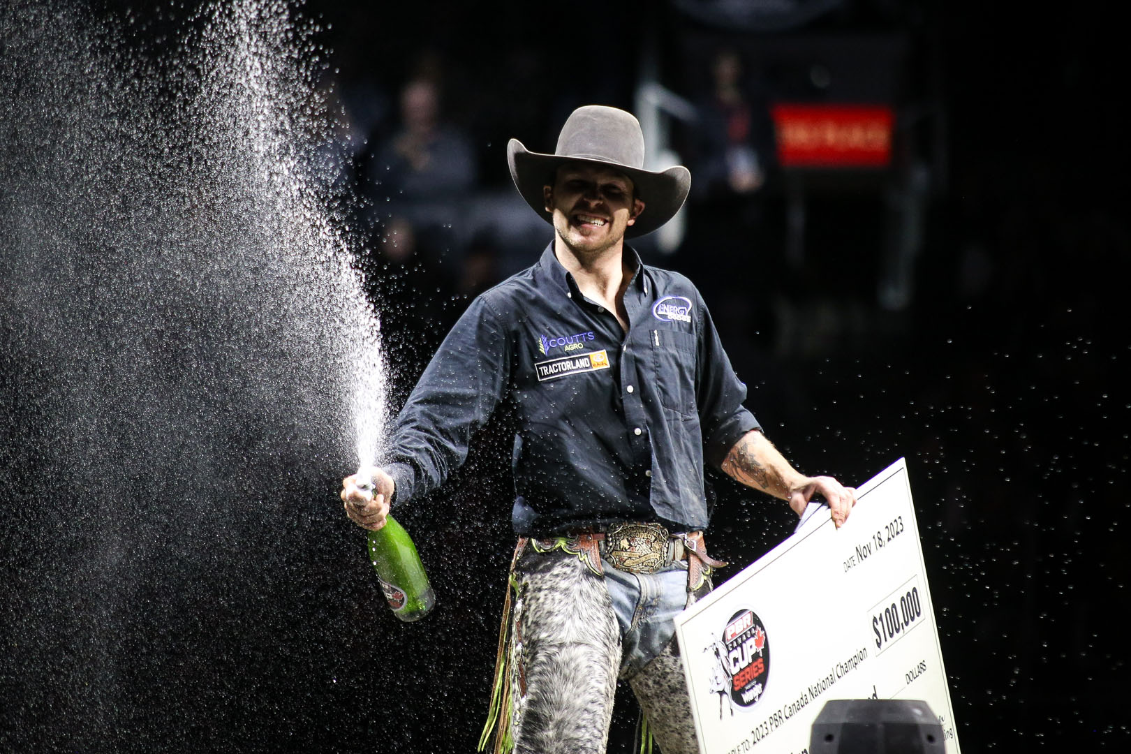 When the dust settled inside Rogers Place, home to the NHL's Edmonton Oilers, it was Dakota Buttar who was crowned the 2023 PBR Canada Champion, courtesy of his flawless 4-for-4 effort during the season-culminating event. Exiting the event with a flashy second-place finish, thus collecting 199 National points Saturday night, Buttar secured his second PBR Canada title thanks to conversions aboard Young Blood (84.75 points), High Voltage (86 points), Irish Rebel (85.5 points) and Time Marches On (86.75 points).